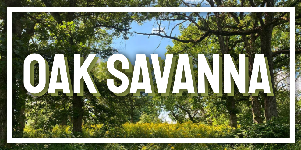 Oak Savannas are some of the rarest ecosystems in the United States. Unlike a forest, the trees of an Oak Savanna do not form a complete canopy, and as a result, plenty of sunlight can reach the ground. These partially-shaded conditions promote a unique set of forbs and grasses as well as significant ecological complexity due to the microclimates created by differences in canopy cover. The dominant tree is Bur Oak (Quercus macrocarpa), which can fully embrace its attractive growth form in this park-like environment. Additionally, other Oaks and fire-tolerant trees like Hickories can be present.